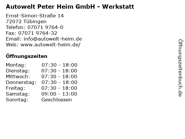 1 Saab Zentrum Tübingen Autohaus Heim GmbH - Werkstatt (Entfernung: 0,03 km) Ernst-Simon-Straße 14, 72072 Tübingen 2 Saab Zentrum Tübingen Autohaus Heim GmbH - Verkauf (Entfernung: 0,03 km) Ernst-Simon-Straße 14, 72072 Tübingen 6 |