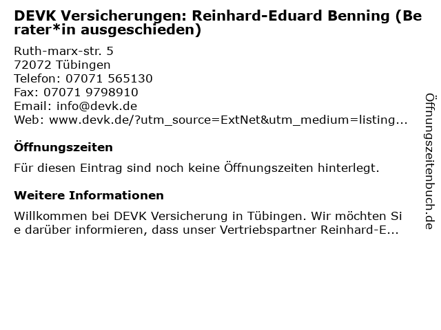 | DEVK Versicherungen: Reinhard-Eduard Benning (Berater*in ausgeschieden) anrufen | |