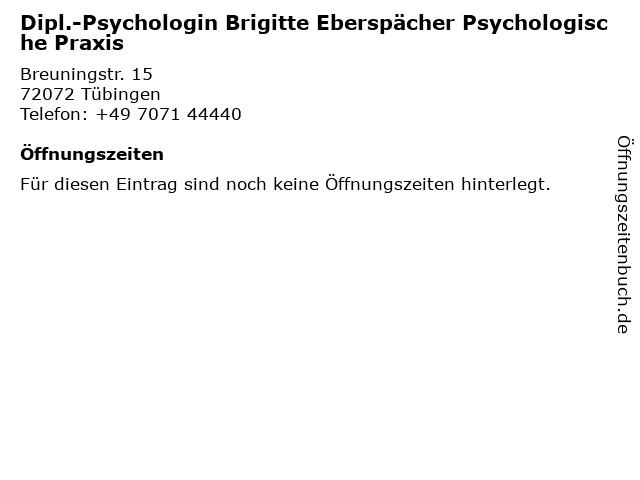 | Dipl.-Psychologin Brigitte Eberspächer Psychologische Praxis anrufen | |