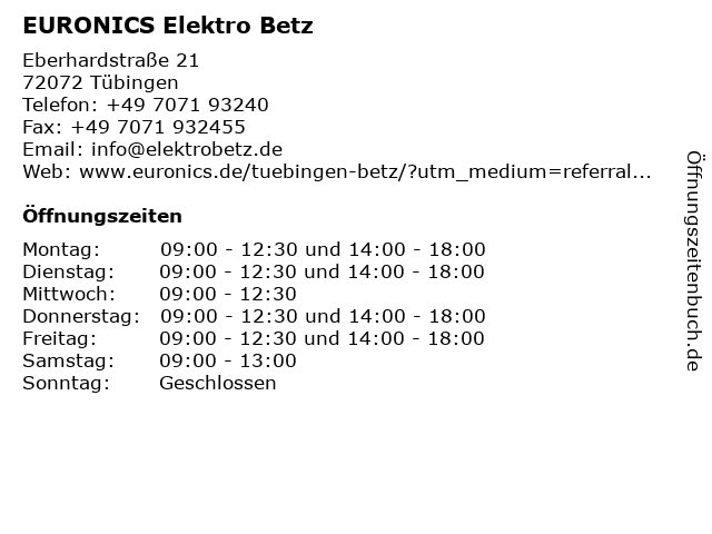 | Öffnungszeiten EURONICS Elektro Betz in Tübingen anzeigen | |