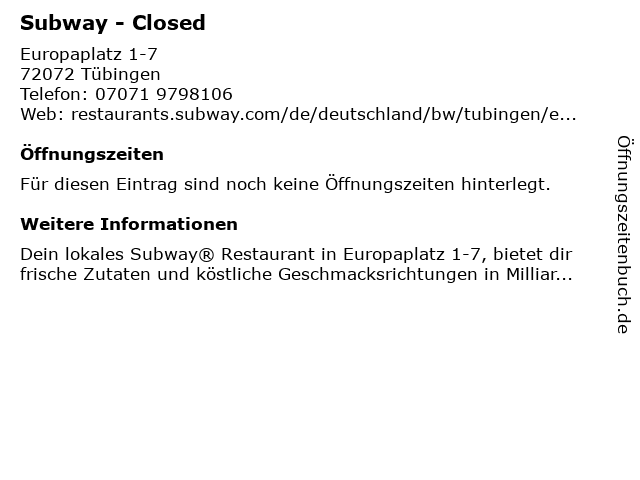 Öffnungszeiten Subway - Closed