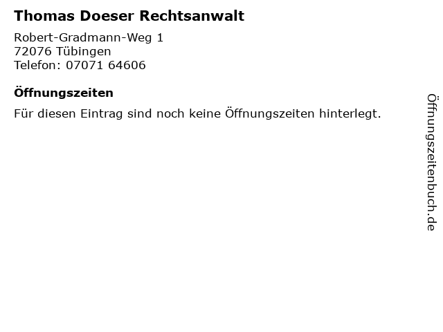 | Öffnungszeiten Thomas Doeser Rechtsanwalt in Tübingen anzeigen | |