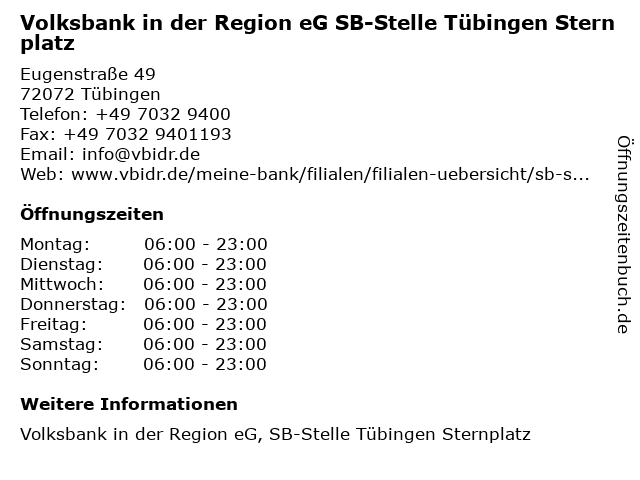 Branchen & Suchbegriffe zu Volksbank in der Region eG SB-Stelle Tübingen Sternplatz:bank, beratung, eg, geldautomat, genossenschaft, immobilienagentur, kredit, region, sb, stelle, sternplatz, versicherung, volksbank |
