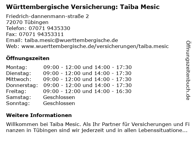 Branchen & Suchbegriffe zu Württembergische Versicherung: Taiba Mesic:mesic, taiba, versicherung, württembergische |