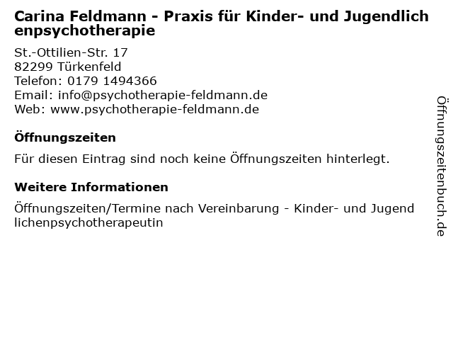 | Carina Feldmann - Praxis für Kinder- und Jugendlichenpsychotherapie anrufen | |