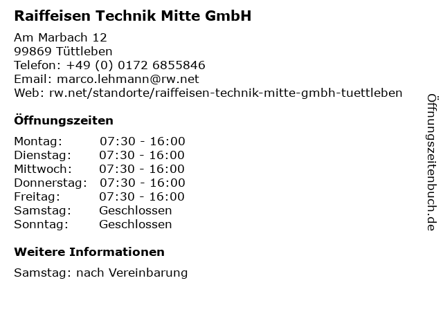 6 Raiffeisen-Warenzentrale Kurhessen-Thüringen GmbH Raiffeisen-Baumarkt (Entfernung: 16,79 km) Mittelhäuser Str. 64 G, 99091 Erfurt |