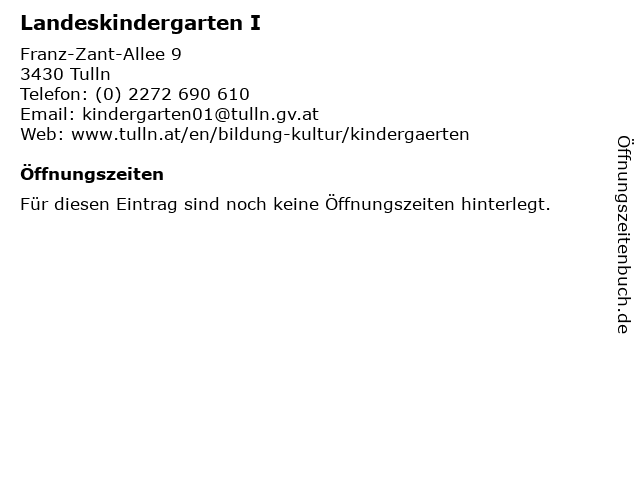 | Öffnungszeiten Landeskindergarten I in Tulln anzeigen | |