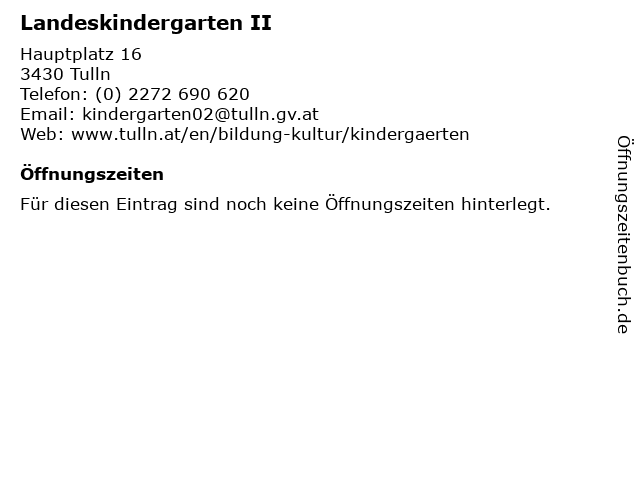 | Öffnungszeiten Landeskindergarten II in Tulln anzeigen | |