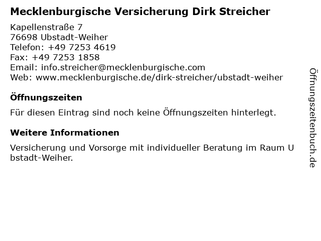 | Mecklenburgische Versicherung Dirk Streicher anrufen | |