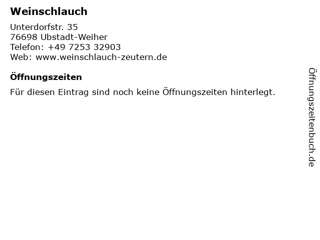 | Öffnungszeiten Weinschlauch in Ubstadt-Weiher anzeigen | |