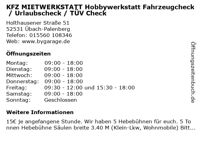 Branchen & Suchbegriffe zu KFZ MIETWERKSTATT Hobbywerkstatt Fahrzeugcheck / Urlaubscheck / TÜV Check:check, fahrzeugcheck, geschäft für autoteile, hobbywerkstatt, kfz, kfz-zulassungsstelle, mietwerkstatt, tüv, urlaubscheck |