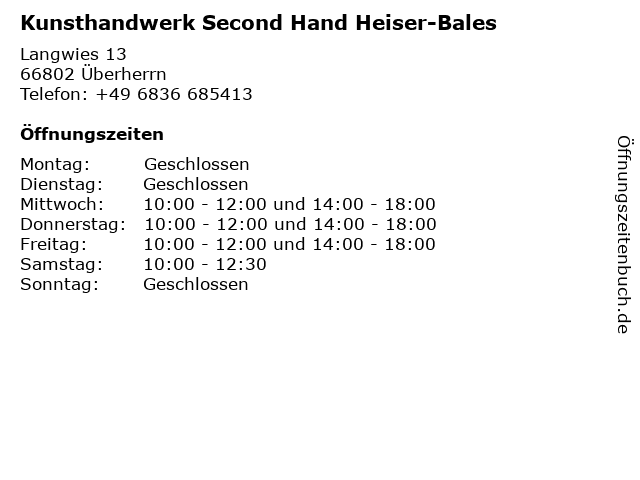 Branchen & Suchbegriffe zu Kunsthandwerk Second Hand Heiser-Bales:bales, hand, heiser, kunst, kunsthandwerk, second |