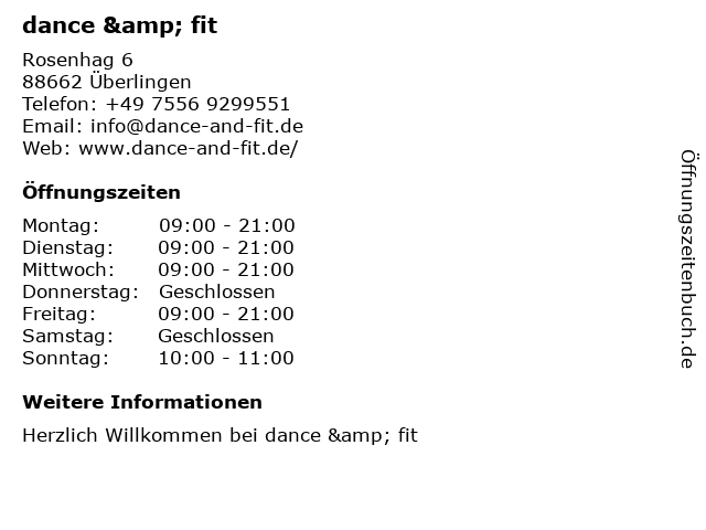 | Öffnungszeiten dance & fit in Überlingen anzeigen | |