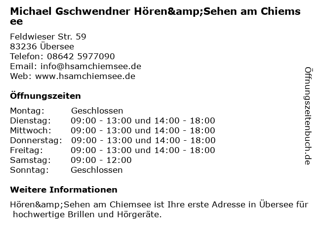 Branchen & Suchbegriffe zu Michael Gschwendner Hören&Sehen am Chiemsee:chiemsee, gschwendner, hören&sehen, michael |