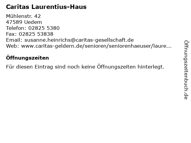 | Öffnungszeiten Caritas Laurentius-Haus in Uedem anzeigen | |