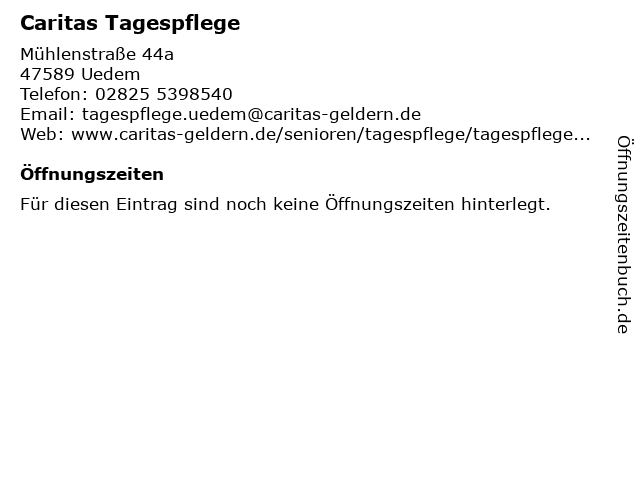 | Öffnungszeiten Caritas Tagespflege in Uedem anzeigen | |