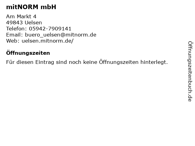 | Öffnungszeiten mitNORM mbH in Uelsen anzeigen | |