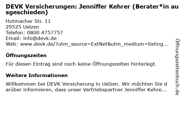 | DEVK Versicherungen: Jenniffer Kehrer (Berater*in ausgeschieden) anrufen | |