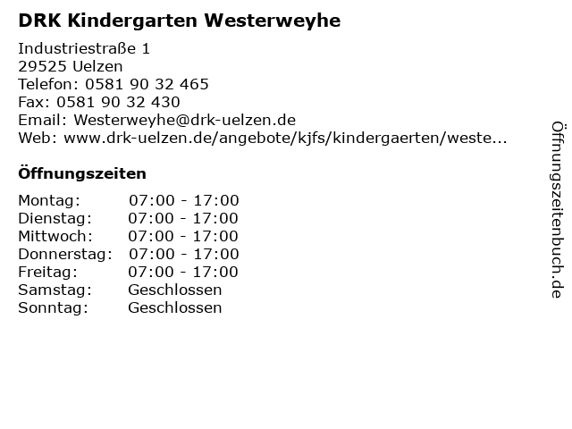 | Öffnungszeiten DRK Kindergarten Westerweyhe in Uelzen anzeigen | |