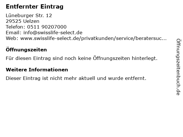 Öffnungszeiten Entfernter Eintrag in Uelzen anzeigen
