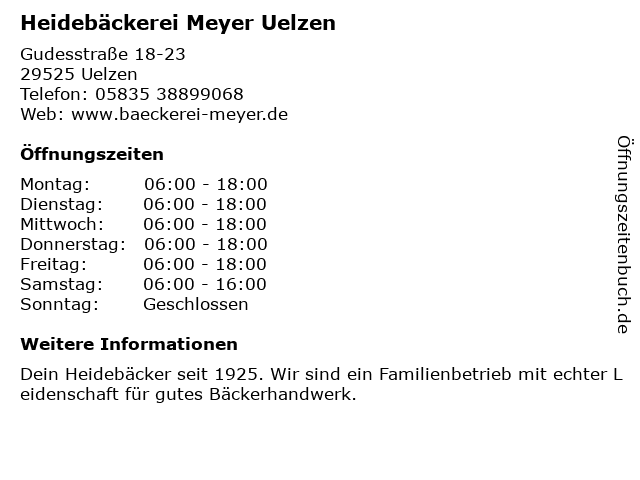 | Öffnungszeiten Heidebäckerei Meyer Uelzen in Uelzen anzeigen | |