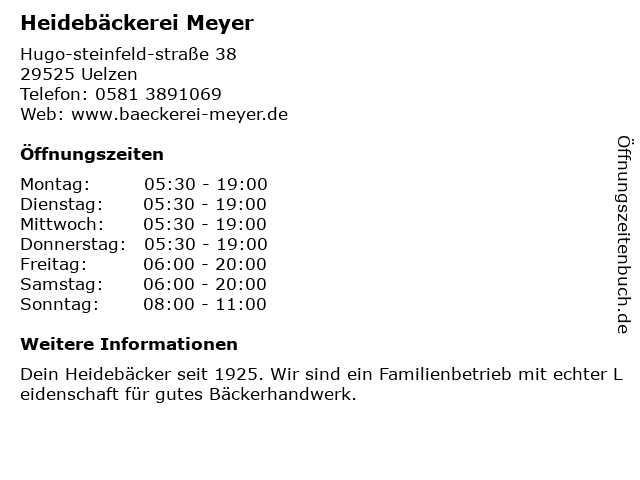| Öffnungszeiten Heidebäckerei Meyer in Uelzen anzeigen | |