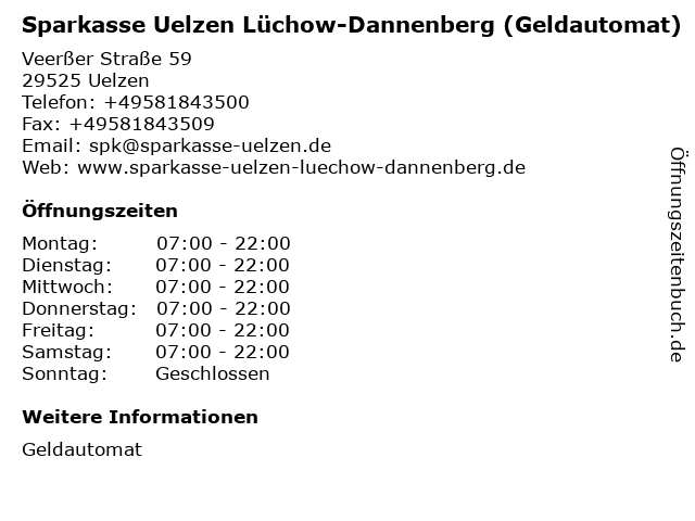 Branchen & Suchbegriffe zu Sparkasse Uelzen Lüchow-Dannenberg (Geldautomat):dannenberg, geldautomat, sparkasse, uelzen |
