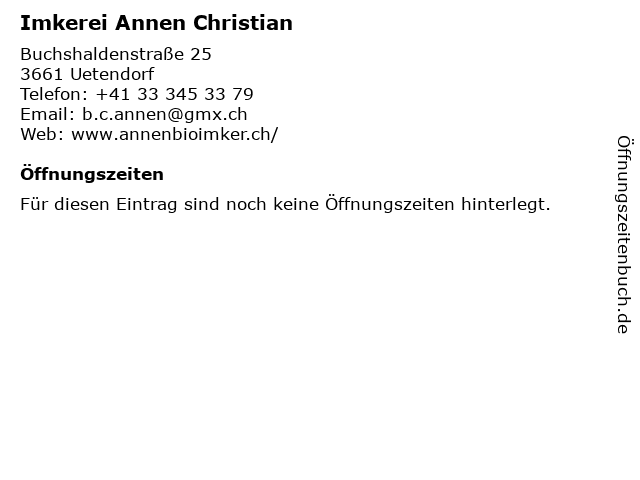 | Öffnungszeiten Imkerei Annen Christian in Uetendorf anzeigen | |