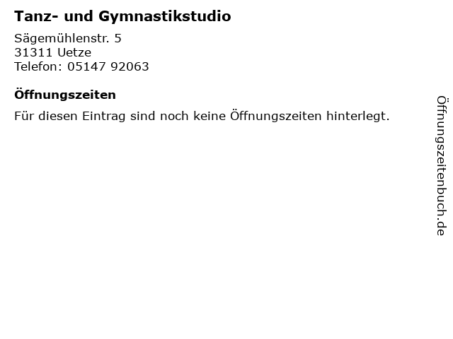 | Öffnungszeiten Tanz- und Gymnastikstudio in Uetze anzeigen | |