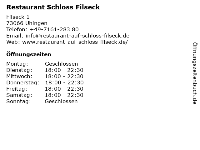 | Öffnungszeiten Restaurant Schloss Filseck in Uhingen anzeigen | |