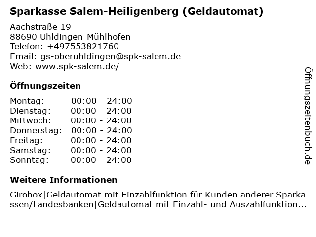 Branchen & Suchbegriffe zu Sparkasse Salem-Heiligenberg (Geldautomat):geldautomat, heiligenberg, salem, sparkasse |