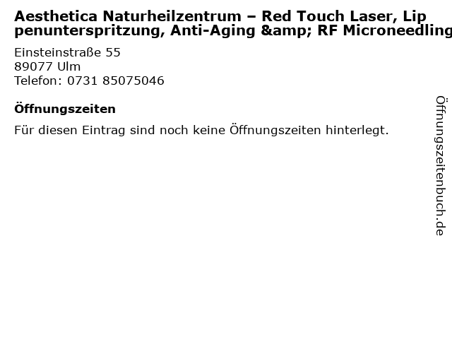 | Aesthetica Naturheilzentrum – Red Touch Laser, Lippenunterspritzung, Anti-Aging & RF Microneedling anrufen | |