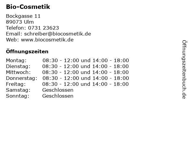 | Öffnungszeiten Bio-Cosmetik in Ulm anzeigen | |