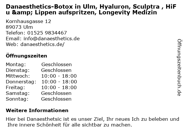 Branchen & Suchbegriffe zu Danaesthetics-Botox in Ulm, Hyaluron, Sculptra , HiFu & Lippen aufspritzen, Longevity Medizin:aufspritzen, botox, danaesthetics, hifu, hyaluron, lippen, longevity, medizin, sculptra |