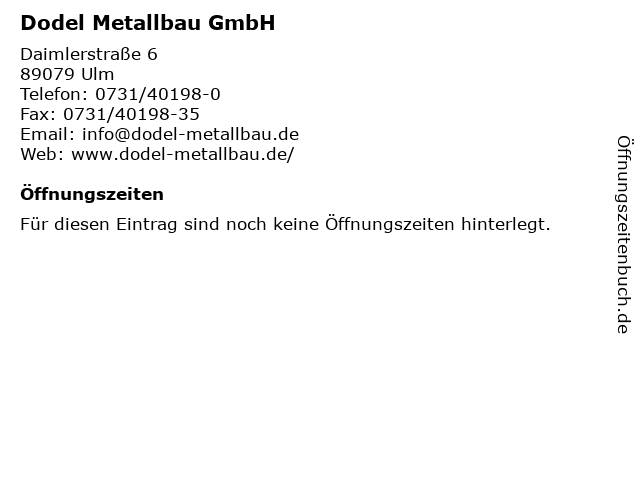| Öffnungszeiten Dodel Metallbau GmbH in Ulm anzeigen | |
