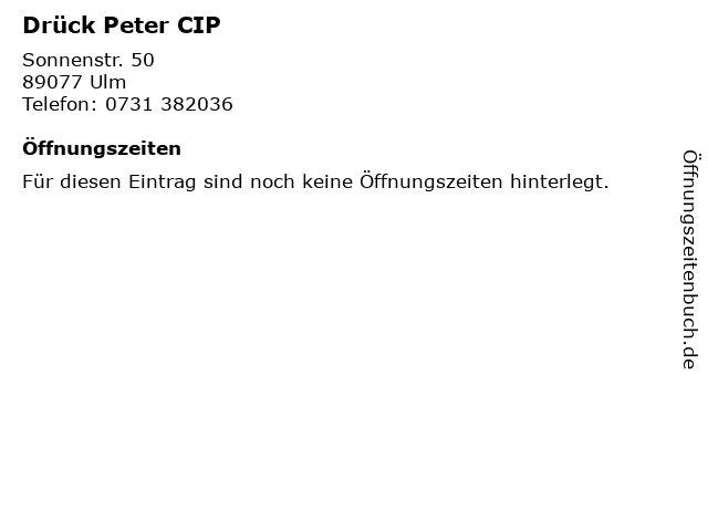 | Öffnungszeiten Drück Peter CIP in Ulm anzeigen | |