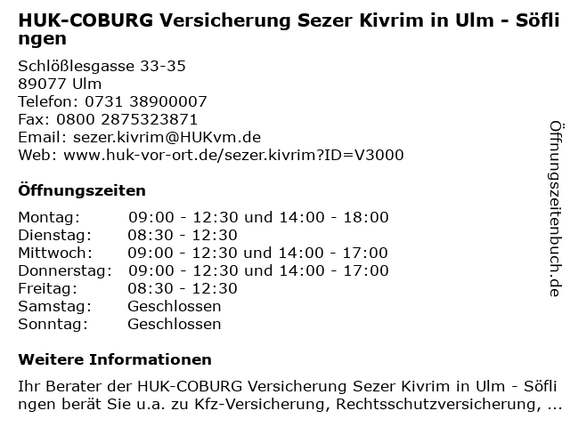 Branchen & Suchbegriffe zu HUK-COBURG Versicherung Sezer Kivrim in Ulm - Söflingen:altersvorsorge, autoversicherung, berufsunfähigkeitsversicherung, coburg, gebäude- und hausratsversicherung, huk, kfz-versicherung (motorrad), kivrim, sezer, söflingen, tierversicherung, versicherung, zahnmedizinische versicherung |