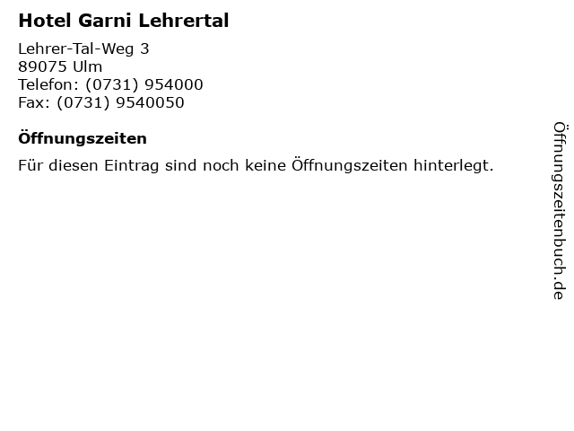 | Öffnungszeiten Hotel Garni Lehrertal in Ulm anzeigen | |