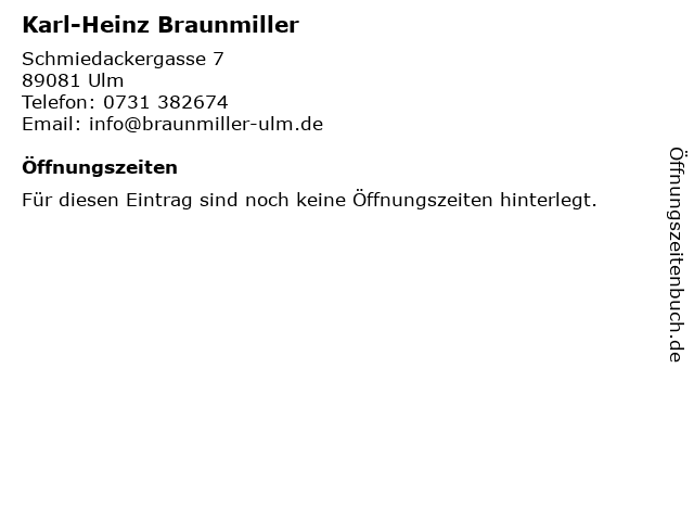 | Öffnungszeiten Karl-Heinz Braunmiller in Ulm anzeigen | |