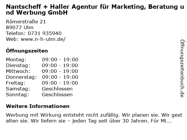 Branchen & Suchbegriffe zu Nantscheff + Haller Agentur für Marketing, Beratung und Werbung GmbH:agentur, beratung, haller, marketing, nantscheff, werbung |