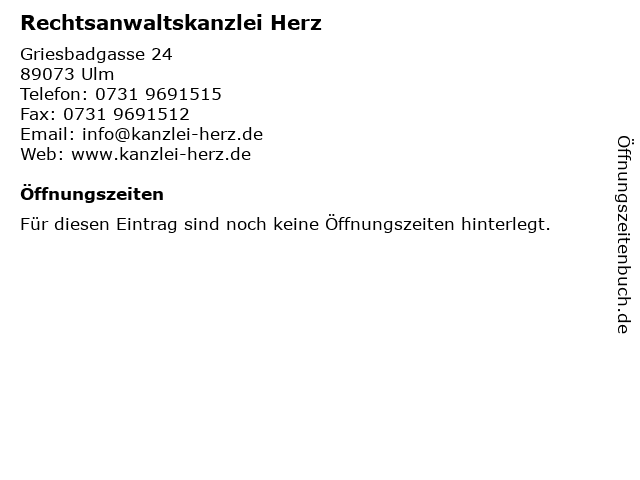 | Öffnungszeiten Rechtsanwaltskanzlei Herz in Ulm anzeigen | |