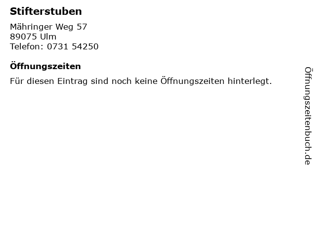 | Öffnungszeiten Stifterstuben in Ulm anzeigen | |
