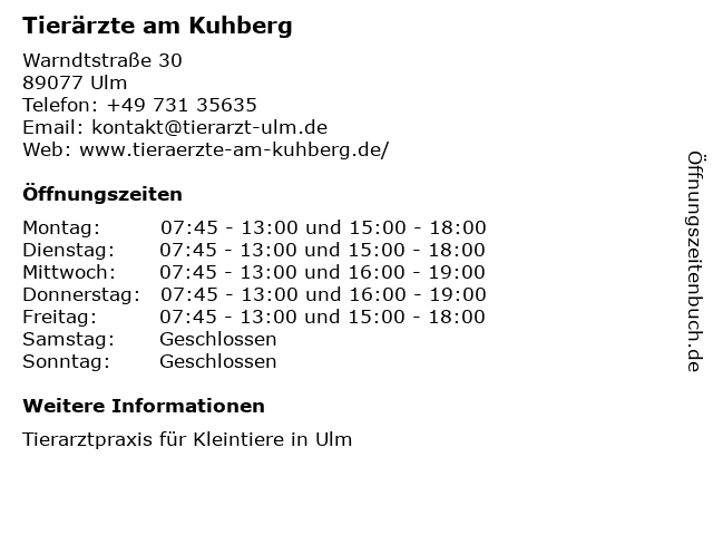 | Öffnungszeiten Tierärzte am Kuhberg in Ulm anzeigen | |