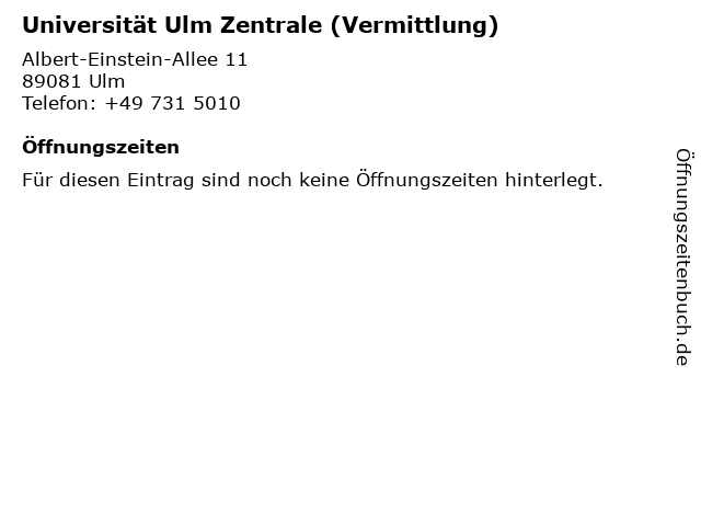 | Universität Ulm Zentrale (Vermittlung) anrufen | |