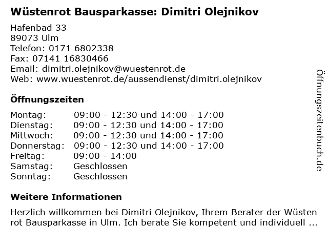 Branchen & Suchbegriffe zu Wüstenrot Bausparkasse: Dimitri Olejnikov:bausparkasse, dimitri, olejnikov, wüstenrot |