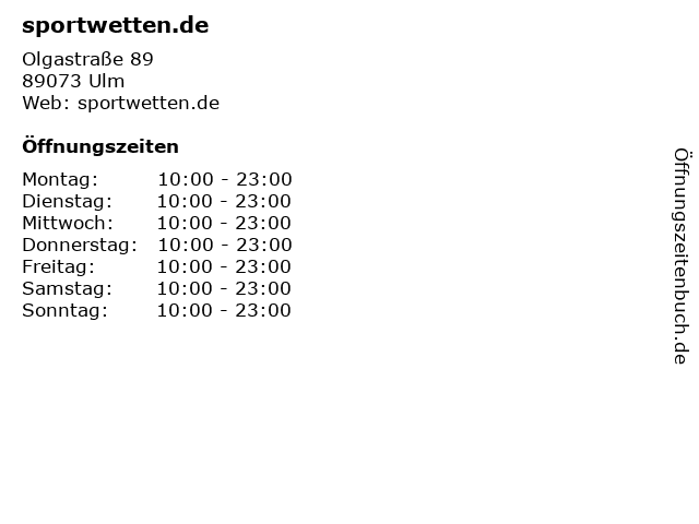 | Öffnungszeiten sportwetten.de in Ulm anzeigen | |