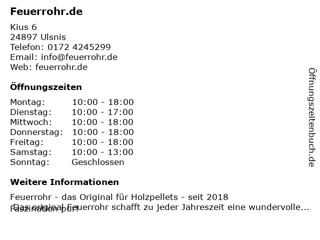 | Öffnungszeiten Feuerrohr.de in Ulsnis anzeigen | |