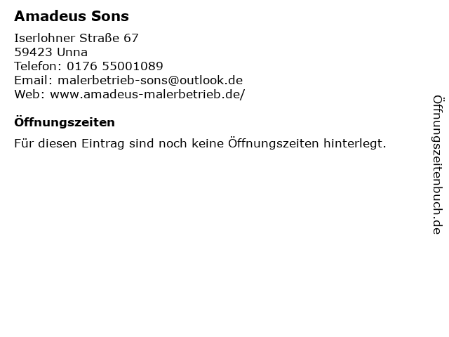 | Öffnungszeiten Amadeus Sons in Unna anzeigen | |