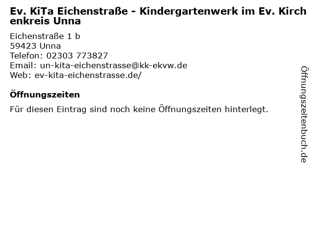 | Ev. KiTa Eichenstraße - Kindergartenwerk im Ev. Kirchenkreis Unna anrufen | |