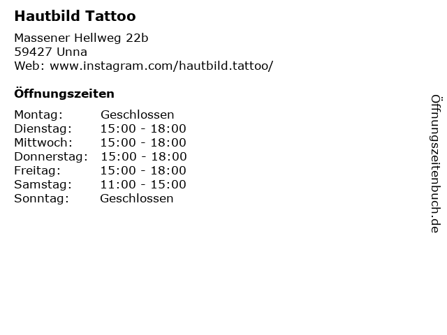 | Öffnungszeiten Hautbild Tattoo in Unna anzeigen | |
